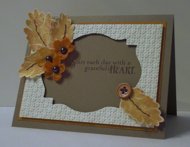 I was able to finish up my PTI MIM card to use stitching with stamping HERE. My leaves are from Rosie Posie & were inked with Memento Peanut Brittle, Potter's Clay & Morocco, then spritzed with water before stamping & cut out using the matching dies. I painted them with Shimmer Spritz Copper watered down to keep it from being too dark. The sentiment is also PTI--Lovely Layers--stamped in Distress Ink gathered twigs. I finally took the advice to buy sprigs of silk flowers & cut them apart as needed. These were 75% off at JoAnn's, so super inexpensive. I sprayed them with the same Shimmer Spritz & added pearls. The negative die cut is Spellbinders Labels 18 & the embossing folder is Stampin' Up by Sizzix. I'm so glad to have one Thanksgiving card done as that holiday seems to always sneak up on me. Thanks for all your sweet comments that really do make my day. Have a great week!