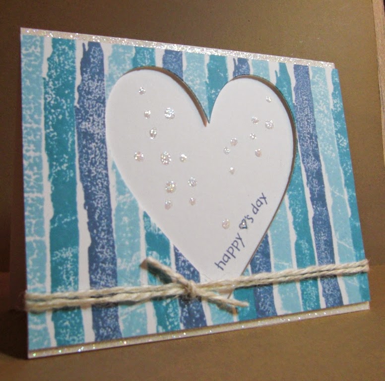 PTI Watercolor Wonder once again! This time I started by making a panel using Distress Inks tumbled glass, broken china & faded jeans for my sister & brother-in-law. Blue has been her favorite color since she was just a kid. I used Score Tape to add prisma glitter to the top & bottom of the card front. The Memory Box heart was die cut from the center of the stamped panel. I partially embossed Taylored Expressions Snowfall folder in the negative space, covered the dots using a glue pen & sprinkled on prisma glitter. The sentiment is by A Muse & I finished it off with white twine. I'm entering the PTI Blue Ombre card Anniversary Challenge. I'm behind in my blog reading, but I'll catch up with you soon. Thanks for checking my blog.