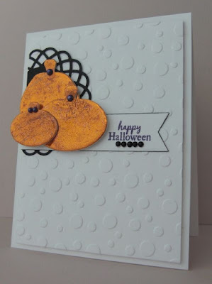 First up is my card for the Ellen Hutson Pin-Sights challenge. The Classroom has tons of tutorials & the latest one showing a background done with Alcohol Inks mesmerized me! I have at least 9 bottles of the inks so picked out Lettuce, Butterscotch & Cranberry to use for Fall colors inspired by the photo. Once again, no luck getting a usable background, but knew it'd work to die cut the EH Bold Blossoms--the only EH product I own right now.