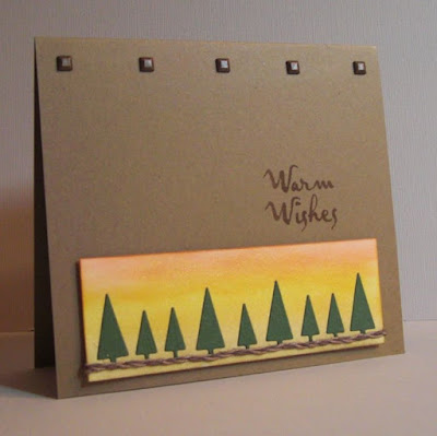 I love Fall with the cooler temps & changing leaves. The evergreens in Oregon combined with the leaves makes for gorgeous scenery! That was my inspiration for this card which I'm entering in the SSS Flickr Challenge #30 Fallin' For Fall & Inkspirational Word Prompt-Glow. The colors of changing leaves were sponged onto a small panel using Distress Inks ripe persimmon, spiced marmalade, dried marigold & frayed burlap.