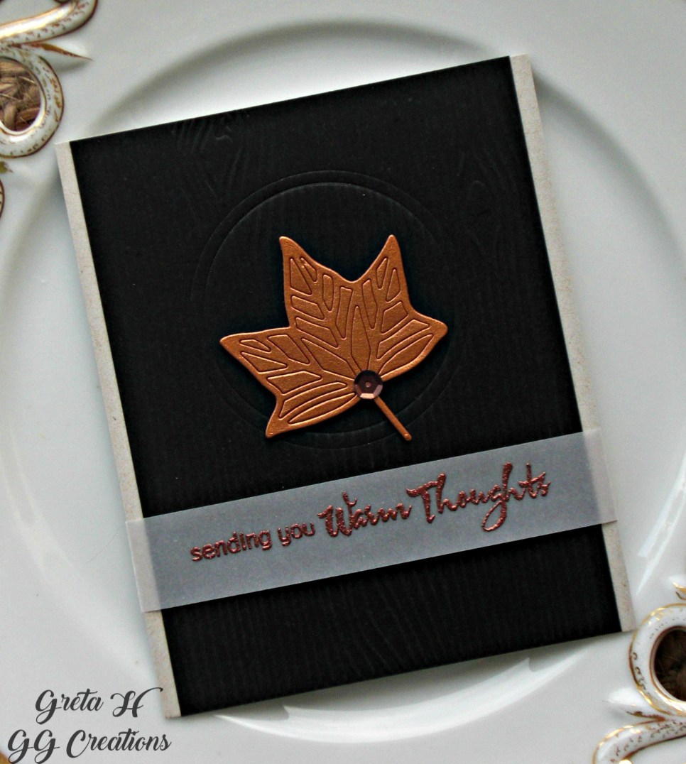 The black panel was dry embossed with a folder by The Paper Studio & then I embossed the 2 LifeStyle Crafts circle dies. The gorgeous HA leaf die is from the new Autumn Icons set which I absolutely love! I die cut it from copper cardstock given to me by my sweet friend, Rosemary. First card made with these dies, so I'm also entering Darnell's NBUS challenge. The sentiment from HA Find Joy was embossed with JudiKins Metallic Bronze powder on a vellum strip. Couldn't believe a sequin in a multi-colored pack matched perfectly! I'm also entering SSS Monday & SSS Wednesday.