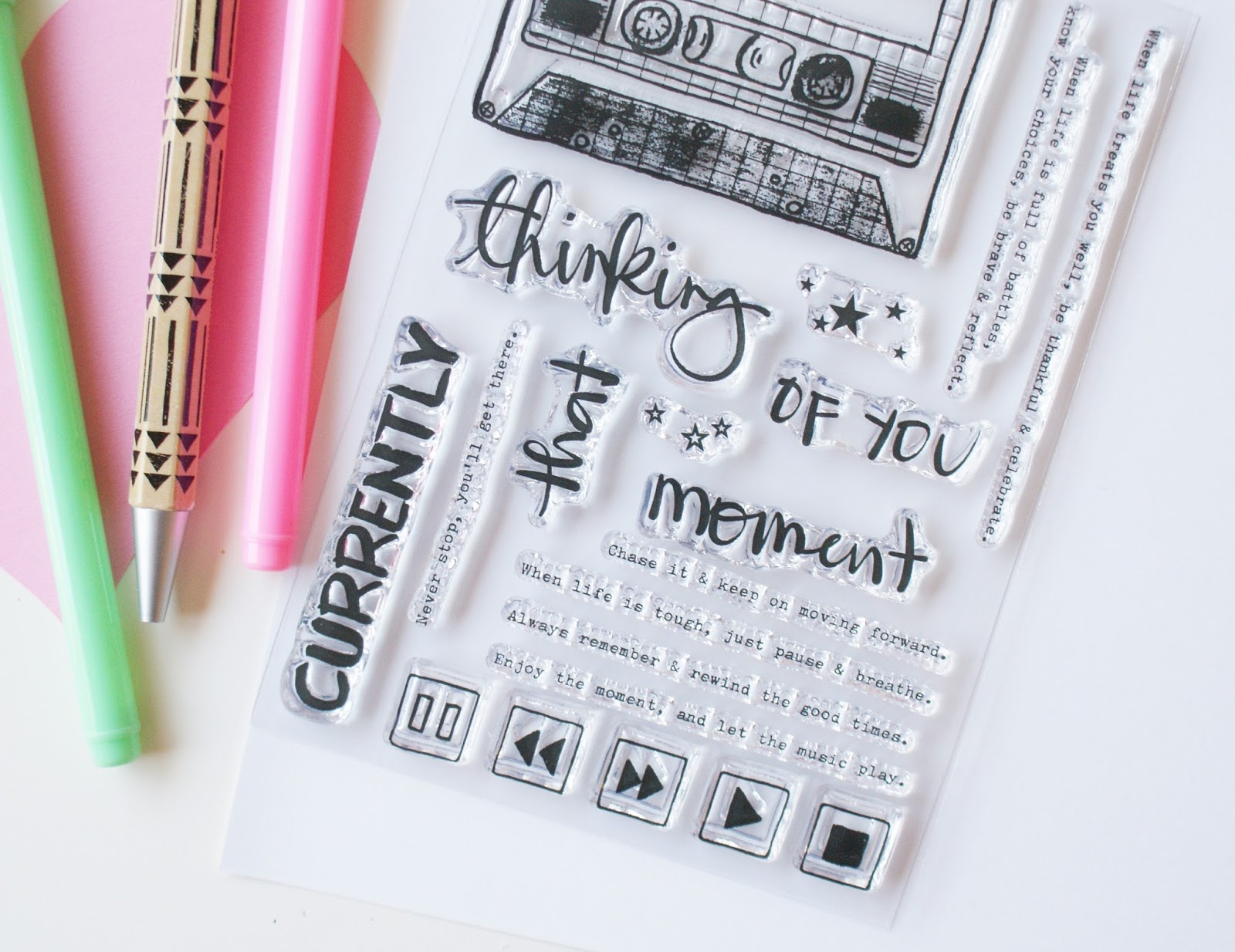 The cassette tape image is so fun & I love the little encouraging thoughts. However, my card today uses some of the big words along with the brushed image from the Totally stamp set.